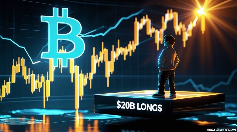 Regardless of Bitcoin’s bullish setup, excessive leverage in derivatives markets poses short-term dangers. Analyst Umair Crypto warned that just about $20 billion in Bitcoin longs might face liquidation if upward momentum falters, with open curiosity in perpetual futures round $40.5 billion and funding charges closely favoring longs.