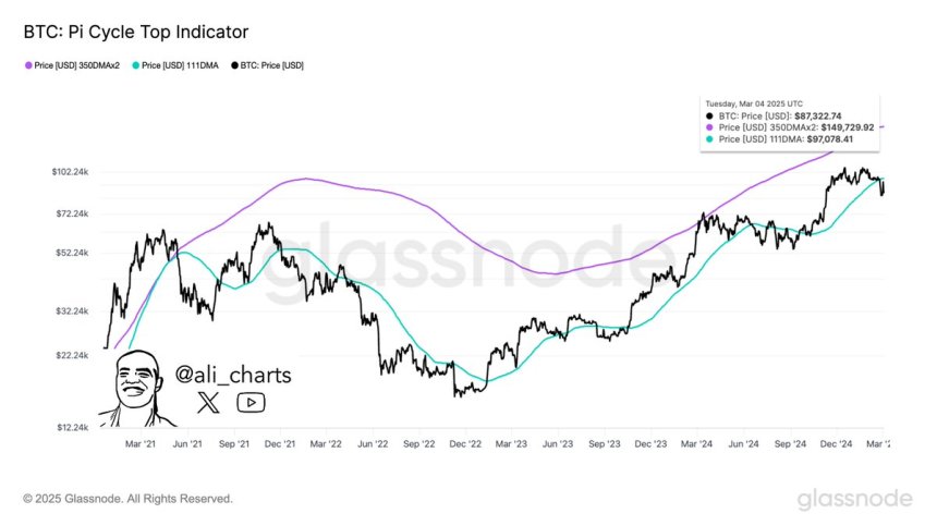 Martinez’s technical analysis on X factors out that if Bitcoin reclaims $97,000, it might achieve momentum for a transfer towards $150,000. His evaluation relies on the Pi Cycle High indicator, a traditionally dependable instrument for figuring out market cycle peaks and main development reversals. Bitcoin might put together for a large rally if value follows earlier cycle conduct, assuming key provide ranges are reclaimed.