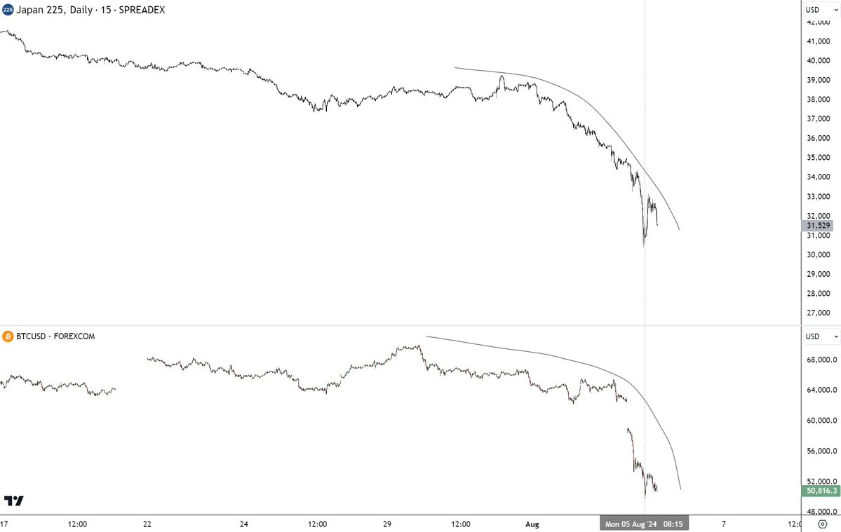 Common crypto analyst JACKIS (@i_am_jackis) remarked by way of X: “I believe that crypto proper now could be reacting to macro circumstances however nothing particular IMO is going on to crypto itself. Right here is BTC & Nikkei compared. When macro circumstances settle Bitcoin / crypto ought to rebound stronger however till then watch out.”