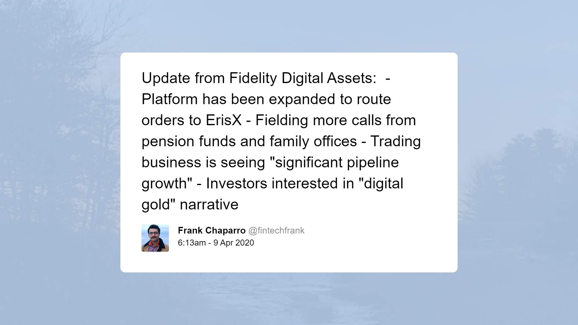 On the institutional side of things, Fidelity Digital Assets– the crypto services department of Wall Street huge Fidelity Investments, a company with trillions under management– has actually validated it has actually seen an uptick in interest.