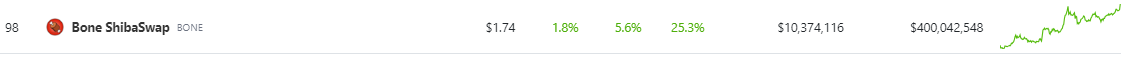 The cryptocurrency market is presently growing in a range of methods, however the Shiba Inu (SHIB) community’s tokens are presently significantly on a favorable run. Bone ShibaSwap (BONE), among the leading tokens in the meme coin community, is on a clear uptrend, increasing as much as 5.6% in the previous day to $1.74 The coin has actually increased by more than 25% over the recently as an outcome of the community’s total buzz.