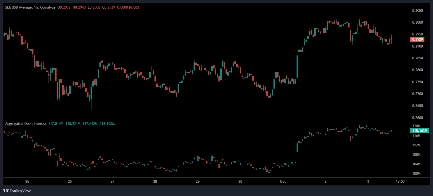 On the decrease timeframe chart, SEI’s price motion reveals a modest rebound after testing lows close to $0.26 in late September, however the restoration has didn’t construct robust continuation momentum. The token has been buying and selling in a decent band between $0.29 and $0.30, with resistance proving tough to beat.
