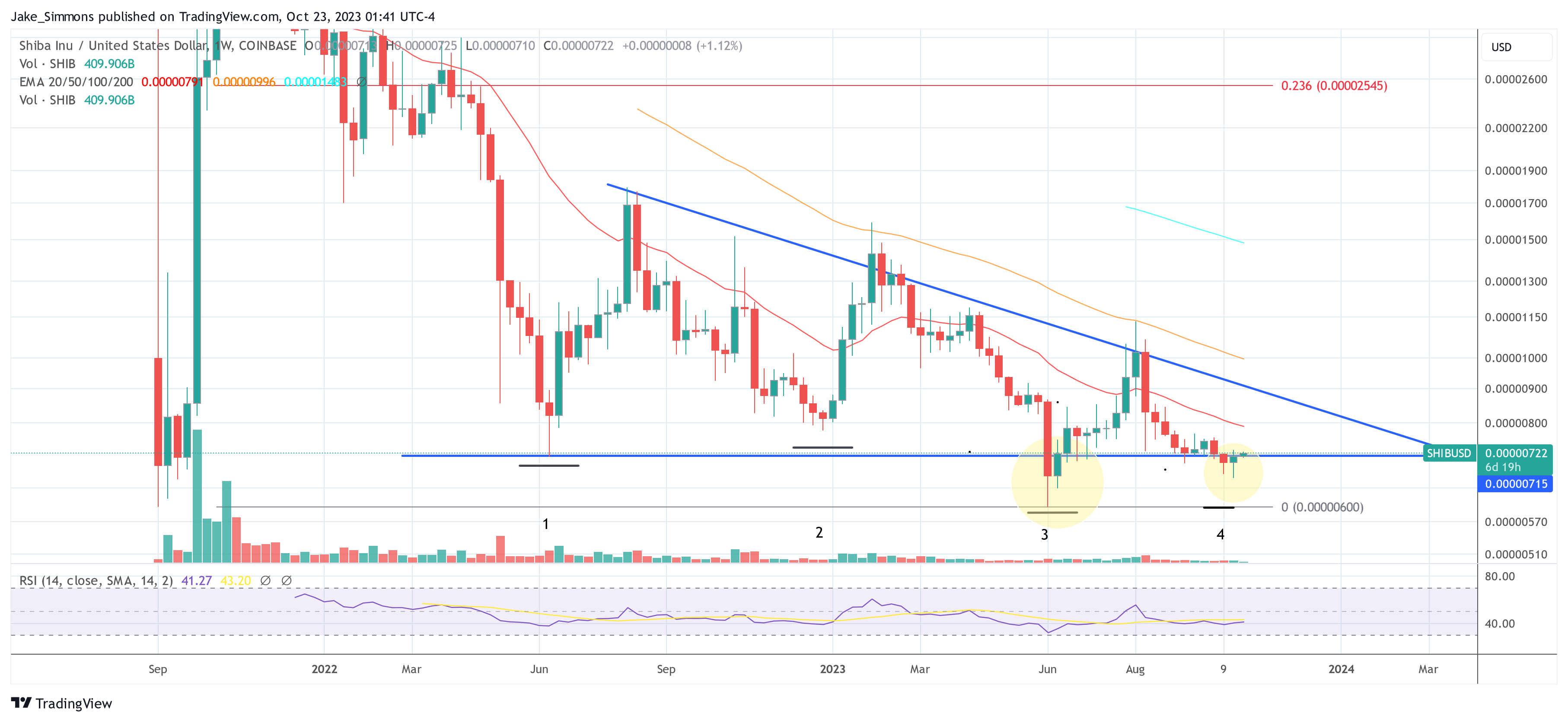 At press time, SHIB traded at $0.00000722. Remarkably, SHIB managed to shut above the neckline of the descending triangle on the weekly chart, which may create a brand new bullish momentum. The subsequent goal may very well be the descending development line of the triangle.