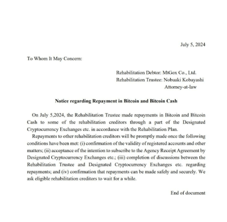 Defunct crypto exchange Mt. Gox lately introduced that it has begun repayments to its collectors. The rehabilitation trustee for the crypto trade is alleged to have already made Bitcoin repayments to some rehabilitation collectors by means of designated crypto exchanges.