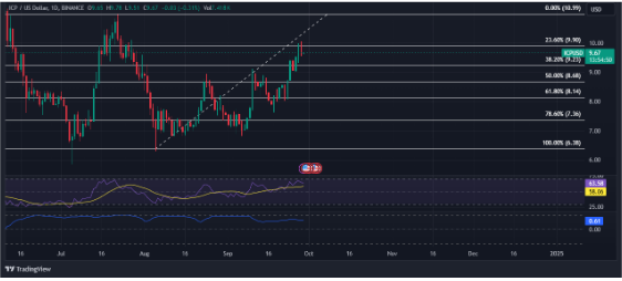 If the token doesn’t stabilize at its present worth stage, ICP bears may have the momentum to interrupt by means of the $9.23 help stage with $8.09 because the goal. Nonetheless, if the token stabilizes it has the potential to realize a breakthrough on the $9.64 resistance with the goal set at $11.41.